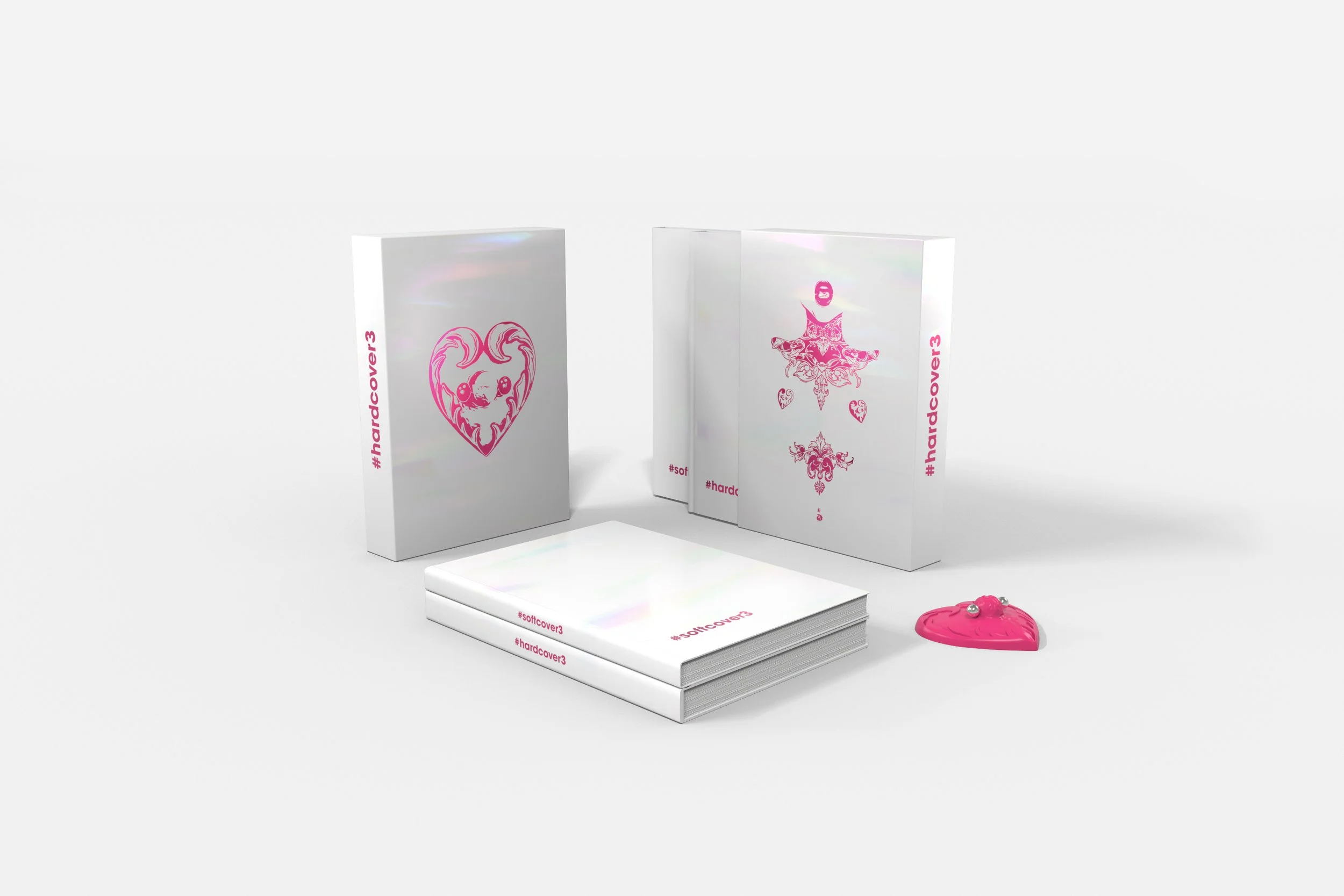 The third book went in the opposite direction in many ways. The design was bright; the marketing suggested it to be liquid and with a multi-color shine, a holo optic, and a design by Daniela Uhlig on the slipcase. We also added another nipple magnet by Erik Staub, this time after a design resembling the nipples of the character that Daniela designed.